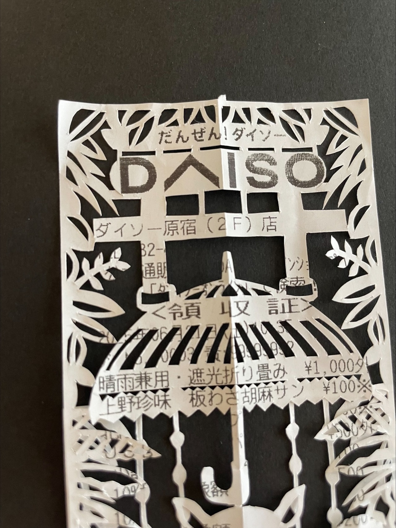 海外から日本に来た旅行者に声をかけ、インタビューをし、レシートを頂戴して切り絵した作品になります。